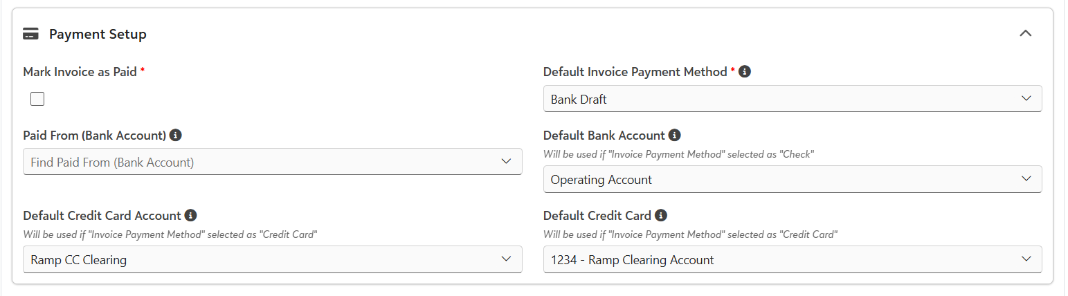 - Default Credit Card - Select the default credit card for the invoice payment.