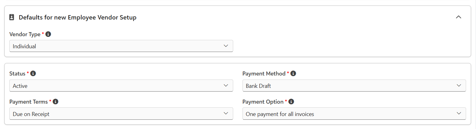 Defaults for New Employee Vendor Setup