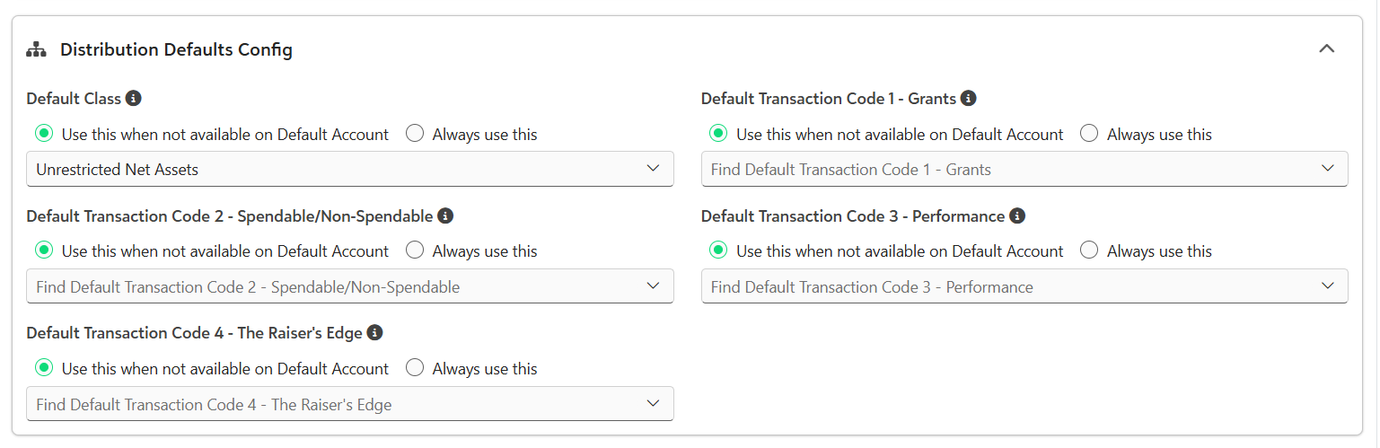 Distribution Defaults Configuration